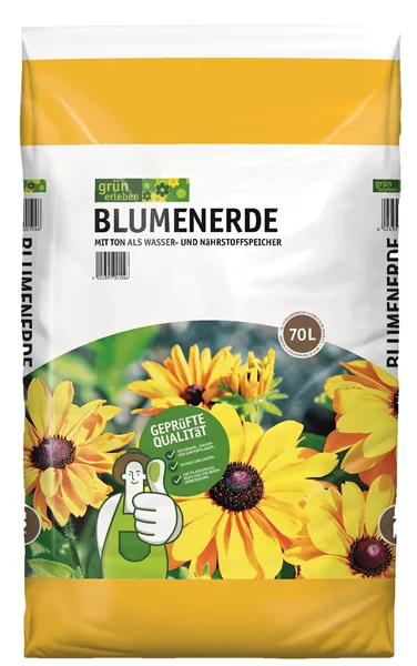 Die grün erleben BLUMENERDE ist geeignet für alle Zimmer-, Balkon- und Gartenpflanzen sowie für Kräuter und Gemüsepflanzen. Naturton wirkt als Puffer in der Erde, Wasser und Nährstoffe werden gespeichert und bedarfsgerecht an die Pflanzenwurzeln abgegeben. Holzfasern sorgen für eine luftige Struktur und optimale Wasserführung. Möchten Sie Stauden und Sträucher neu anpflanzen, füllen Sie in das Pflanzloch die grün erleben BLUMENERDE ein. Sie können auch den Aushub im Verhältnis 1 : 1 mit der Erde mischen. Nach dem Pflanzen die Erde gut andrücken und gut wässern. Töpfe, Balkonkästen, Kübel und Schalen mit der grün erleben BLUMENERDE befüllen und die Pflanzen direkt einsetzen.